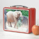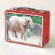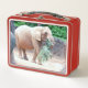 This is a standard metal lunchbox that appears to work just fine. We designed this box ourselves with an uploaded photo and custom text on the front and back. It looks absolutely beautiful except the front of the lunchbox is not centered like it shows in the photo. The print borders don't align with the inset flat part of the box where the preview photo online showed it perfectly centered in there. The back looks nice and centered though.