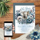 Beautiful blue floral bouquet with hydrangeas and anemones along with blue tinged greenery are the perfect surrounding for this majestic baby elephant in this blue watercolor "Oh Boy" Baby Shower design.