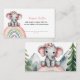 Celebrate the joy of a new arrival with this enchanting watercolor scene, perfect for a baby shower theme. A sweet elephant wearing a pink floral crown sits atop a vibrant rainbow, surrounded by lush green pine trees and majestic mountains in the distance. The soft and dreamy watercolor design adds a magical touch, ideal for a whimsical and heartwarming celebration.