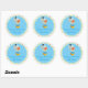 This circus themed sticker features a blue background surrounded by a repeating patter of red, blue, yellow and green stars. A cute circus elephant stands on a circus ball in the middle of the sticker.