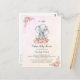 Adorable baby girl elephant with flowers above her ear and a floral wreath spray under her toes. Coral and blush pink watercolor background with floral corners. Templates provided for you so it's an easy way to make this for your own party.