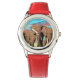 Pictured on a beautiful opal morning sunrise are three brown Elephants.