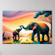 A heartwarming elephant painting captures the bond between a mother and child in the vibrant landscape of India. The joyful scene reflects a happy life in the animal kingdom, where the majestic elephants roam freely. This artwork exudes a whimsical charm while celebrating the beauty of wildlife and the nurturing relationships that thrive in nature.