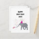 A cute illustration of an elephant partying and having fun! Elephant wearing a party hat and blowing party horn with confetti raining down on it. Let the celebrations begin! Perfect for anyone who loves funny animal illustrations. Ideal for a birthday card.