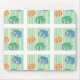 Beautiful seamless pattern of colourful cartoon elephants with shadows walking around over stripes in calming pastel shades of orange green and blue perfect for kid room as wallpaper or textile. © and ® Bigstock® - All Rights Reserved.