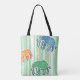 Elephant Pattern On Green Stripes Tote Bag
