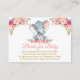Elephant Pink Floral Gold Books For Baby Shower Enclosure Card