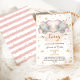 Watercolor Blush Pink Gold Elephant Twins Baby Shower Invite. Cute sleepy elephants on the moon, with glitter details around, like stars and gold dots, shimmer butterflies, elegant script and watercolor roses. This invite is a mix of boho, modern, and elegant styles. Don't forget to discover the full collection.