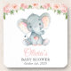 Elephant, Pink Watercolor Flowers, Baby Shower Coaster