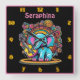 A cheerful elephant with vibrant blue skin strums a guitar amidst a backdrop of swirling patterns and colourful flowers, radiating joy and creativity.