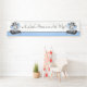 Elephant prince baby shower backdrop with adorable prince elephant on a pretty silver pillow on a blue and white dot background. This elephant baby shower backdrop is easily customised with your text.