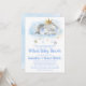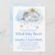 Virtual baby shower invitation with adorable baby elephant prince on a pretty blue and gold watercolor cloud background. This boy elephant baby shower invitation is easily customised for your event by simply adding your details.