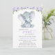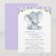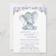 Elephant, Purple Watercolor Flowers, Baby Shower Invitation