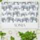 Elephants and rhinoceros watercolor pattern with horizontal lines of animals in shades of grey