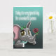 A cute elephant holding a flower with her trunk. Above her reads "Today is a very special day for a wonderful person".
