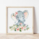 Elephant, Safari, Pink Flowers, Girl Nursery Photo Print
