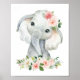 Elephant, Safari, Pink Flowers, Girl Nursery Poster