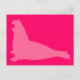 A bubble gum pink elephant seal on a hot pink background printed just for you on a very fine postcard.