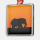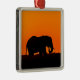 Ceramic ornament with image of elephant as the sun sets directly behind it.