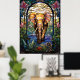 Elephant in a Colorful Jungle Stained Glass Window Design