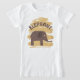 The design features a charming cartoon-style illustration of an elephant, rendered in warm brown tones. Its large, expressive eyes and wide ears give it a friendly and approachable character. The elephant’s trunk gracefully curves downward, adding movement to the composition. Behind it is a yellow brushstroke-like backdrop, which adds a splash of playfulness and contrast. Above the elephant, the word “ELEPHANT” is displayed in bold, all-caps brown lettering that complements the character’s colour and feel.