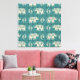 A watercolor elephant pattern created in a soft, teal colour. Artist: Daphne Brissonnet