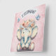 Create a dreamy, elephant-themed nursery that your little one will adore! This charming wall clock features a cute elephant sitting gracefully on a soft pink watercolor background, adorned with a delicate floral wreath on its head. The gentle pastel tones and whimsical design make it the perfect addition to a baby's room, bringing warmth and a touch of nature into the space. Ideal for baby showers, birthdays, or simply to complete your nursery decor, this art piece blends seamlessly with any style, adding a dash of sweetness and comfort to your child’s haven.