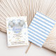 Watercolor Soft Blue Gold Elephant Twin Boys Shower Invite. Cute sleepy elephant on the moon, with glitter details around, like stars and gold dots, shimmer butterflies, elegant script and watercolor blue flowers. This invite is a mix of boho, modern, and elegant styles. Don't forget to discover the full collection.