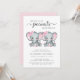 A cute twin baby girls shower invitation with "Two Sweet Little Peanuts Are On Their Way" written in soft grey modern typography and a stylish script, and two pastel pink watercolors of baby elephants. Personalize the mother-to-be's name and shower details in simple grey typography.