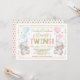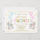 Elephant Twins Baby Shower Blue Pink Gold Boy Girl Invitation