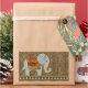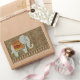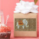 This whimsical design features an adorable elephant walking a diamond-patterned border. The elephant's blanket forms a place to hold your name or monogram. Design is warm orange and gold tones on a patterned cheetah skin background.