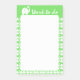 Whimsical white elephant and daisy design pattern over a green background. "work to do" or change text as preferred.