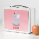 Sweet sitting baby elephant with red hearts over pink background. Optional monogram