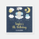 This cute and whimsical napkin features an adorable baby elephant in a gold crown sitting on a cloud with falling stars. In the background is a starry night sky and crescent moon. The text combines handwritten script and sans serif fonts for a stylish and modern look. This is perfect for a birthday party.