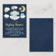 This cute and whimsical display shower enclosure card features an adorable baby elephant in a gold crown sitting on a cloud with falling stars. In the background is a starry night sky and crescent moon. The text combines handwritten script and sans serif fonts for a stylish and modern look. This is perfect for a baby shower.