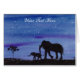 A tiny watercolor and ink painting of an African Elephant mother and her calf under the starry, night sky. Painted for Art-O-Mat.