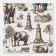 This luxurious wallpaper features a set of grey African elephants alongside with minor landmarks or statues.