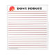 Cute, handy notepad for those good ideas, tasks, appointments, packing lists or whatever for those who prefer real world, old school reminders that don't depend on any sort of electronic technology. You have the option to keep, delete, re-size, or replace our red baby elephant; keep or delete the red lines, & even change the headline! Choose from 2 sizes.