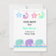 A cute design featuring a string of moon and stars and baby elephants accented by a border of soft stripes. Customise with all of your baby shower information as desired.