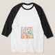 A vibrant t-shirt design featuring the words "Elevate, Engage, Enthuse" in a playful, handwritten style. Each letter is a different, bright colour, creating a fun and energetic vibe. The design is set against a plain background, allowing the text to take centre stage.