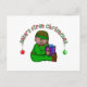 An African American baby dressed in a green suit and a striped stocking cap on customisable T-shirts, tote bags, and other holiday items. Candy cane striped text reads "Baby's First Christmas"!