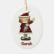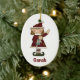 Cute Christmas ornament, with country primitive artwork of a little girl elf holding a dolly. Personalise front and back with your child's name. Adorable ornament she'll treasure for years.