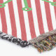 Elf Ho Ho Holiday throw blanket features a diagonal stripe white and red background with a cute elf wearing a stocking cap of red and green resting against a big Christmas tree ball surrounded by snowflakes of red and green and red and white striped candy canes. Candy cane and gold jingle bell text reads Ho Ho Ho! This fun and colourful elf design holiday throw makes a great gift or get one for yourself to enjoy for years to come!