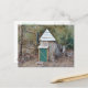 This postcard features an elf house found in the woods of Killingworth, Connecticut at Winterberry Christmas Tree Farm.
