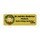 An elf in a wreath makes up these fun Christmas return address labels. Customisable so you can add your own text and change the background colour. Bring in the holidays with this festive design.