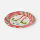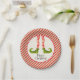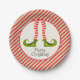 Fun elf legs wearing red and ivory striped tights and green boots with jingle bells and any wording in chic lettering, these holiday paper plates are available in 2 sizes. MATCHING items in our store.