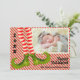 Celebrate the holidays with this cute Christmas photo greeting card featuring fun elf legs wearing red and ivory striped tights and green boots with bells on a red, green and ivory stripe background. Just upload your favourite family photo, add your family personalisation, use HAPPY HOLIDAYS or change the greeting and the font. **ADD more photos or more details on the back with the CUSTOMIZE further link. Select Matte for heaviest paper and High Definition for best photo quality.