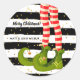 Small stickers feature fun elf legs in striped tights and green boots on black and white stripes and gold dots and includes your personal greeting and names. MATCHING items in our store.