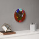 The clock did not take as long to arrive as I thought it might and was extremely well packaged. I didn't do the measurements so I didn't realize it is a little smaller than the average clock but that does not matter (just make sure you check if that's important to you).It is really nifty! It seems very solid and well made not flimsy at all. It has been going well and has kept good time in its few weeks on my wall. Nice product. Gets noticed too! Nicer in real life than the picture but true to the picture