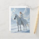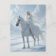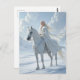 An elven queen with long white hair sits astride a majestic white horse in a vast snowy landscape in this digital artwork created by artist Jayne Wilson.